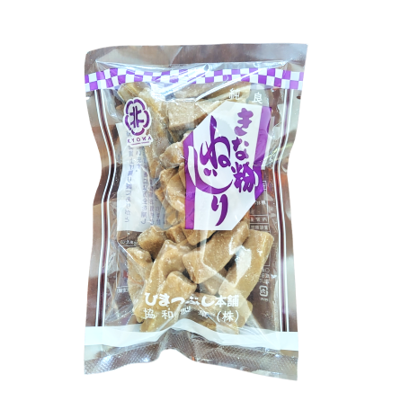 水飴(国内製造)、きな粉(大豆(北海道産))(遺伝子組み換えではない)、砂糖、食塩/紅花色素、クチナシ色素