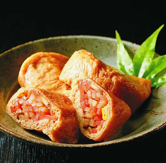 夜高は北海道沼田町のお祭り「夜高あんどん祭り」から名付けました。 小揚げの中にごぼう、にんじん、椎茸、スイートコーンを小揚げに詰めて、優しいお出汁で煮込んだ信田煮です。 3個入。
