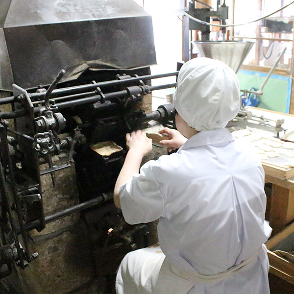 EXILE男旅、妄想トレインでも紹介された松浦商店(長万部町)のあめせんべい。1枚1枚丁寧に焼き上げたせんべいで水あめをサンドしています。