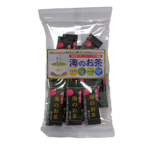 海のお茶は、ほんのりとした柚子の風味と独特の磯の香りが楽しめる特別なお茶です。北海道産の帆立や日高昆布、わかめを使用し、オホーツクの塩がアクセントを加えています。さらに、海洋性のコラーゲンペプチドが配合されており、美容にも嬉しい効果が期待できます。個包装の顆粒タイプで、20包入りなので毎日手軽に楽しむことができます。お湯を注ぐだけで、海の恵みを感じる一杯をお楽しみください。